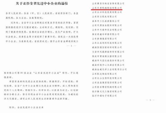 中國中小企業(yè)山東網(wǎng)公布了《關(guān)于表彰全省中小企業(yè)的通報(bào)》,山東天意機(jī)械股份有限公司被評為全省先進(jìn)中小企業(yè)!
